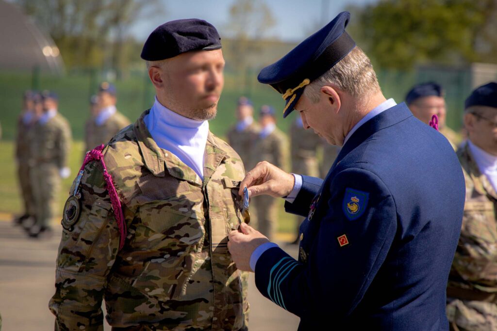 La cérémonie a également été marquée par la remise de la Médaille du Mérite à deux militaires qui, en 2024, ont sauvé la vie d’un joueur de football victime d’un arrêt cardiaque.
