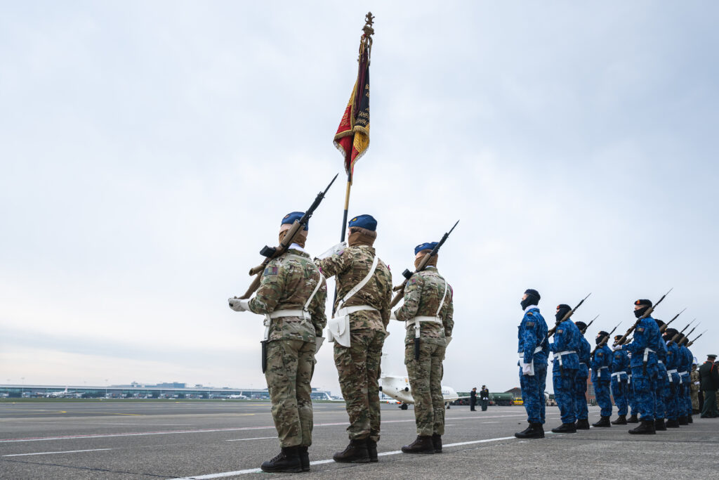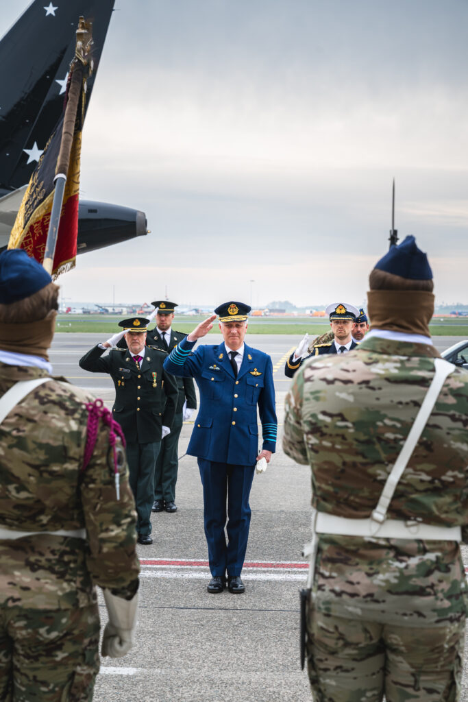 Le 2ème Wing Tactique a été désigné pour prendre part à la parade de départ de leurs Majestés le Roi Philippe et la Reine Mathilde qui quittaient la Belgique pour une visite d’État de trois jours en Norvège. Sur le tarmac de l’aéroport militaire de Melsbroek, l’Etendard du 2ème Wing Tactique et son escorte ainsi que vingt militaires de la base de Florennes représentaient la Force Aérienne aux côtés la Force Terrestre, de la Marine et du Service Médical. Sur place, le Roi arborait une tenue de la Force Aérienne. Il a salué les troupes avant de monter dans l’avion, accompagné de son épouse et de plusieurs ministres fédéraux et régionaux. Une trentaine d’entreprises et de recteurs d’université faisaient également partie du voyage. A Oslo, il a été reçu par le Roi Harald V et son fils héritier, le Prince Haakon.