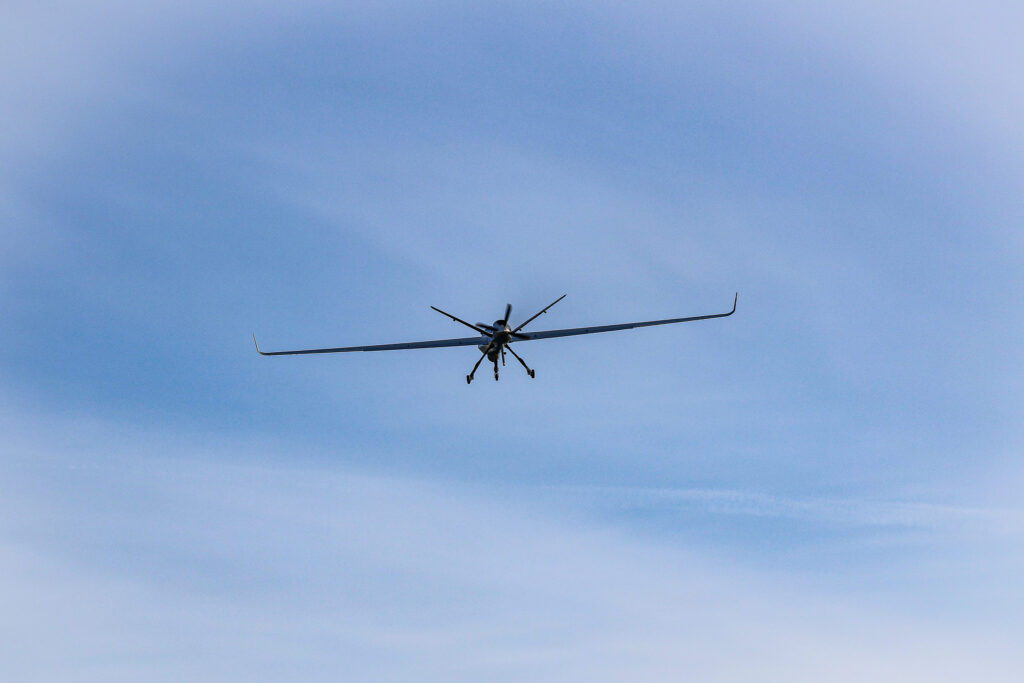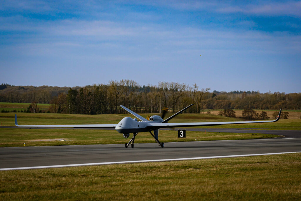 Ce mercredi 18 février 2026, le MQ‑9B SkyGuardian immatriculé MS04 a réalisé son premier vol avec succès depuis la base de Florennes.