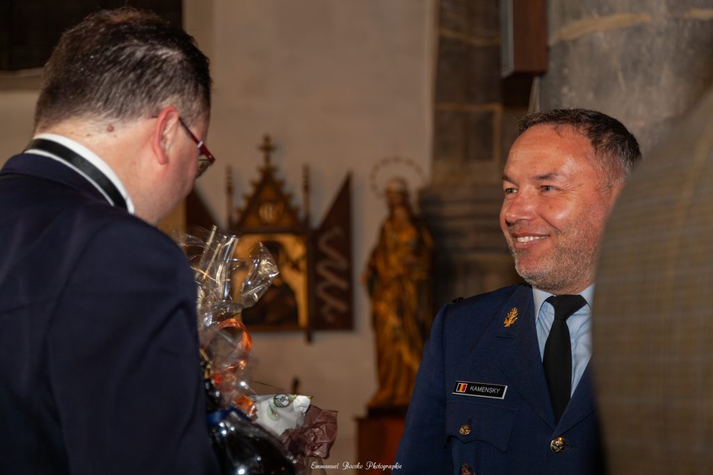Comme annoncé, c’est en ce début de printemps et au cœur même de la magnifique église Saint-Michel au centre de Gerpinnes qu’a été organisé le premier concert de garnison de l’année. Il est en effet de tradition que le 2ème Wing Tactique mette sur pied un concert une à deux fois par an au profit des villes et communes marraines de l’unité. Ce fut à nouveau là, une belle occasion pour la communauté militaire d’aller à la rencontre de la population des environs dans une atmosphère empreinte de convivialité. Quelque 350 personnes avaient répondu à l’invitation lancée conjointement par Monsieur Philippe Busine, bourgmestre de Gerpinnes et le Colonel aviateur Cédric Kamensky, Chef de Corps du 2ème Wing Tactique. À en juger par le tonnerre d’applaudissements saluant chaque morceau, les mélomanes et autres amateurs de musique classique ont particulièrement apprécié la prestation du Chef de Musique, l’Adjudant-Major Jonathan Dumoulin et de son orchestre. Grâce à ce magnifique concert, nous avons réussi à récolter la somme de 1000€ qui a été directement reversée à l’ASBL Faim et Froid Gerpinnes.